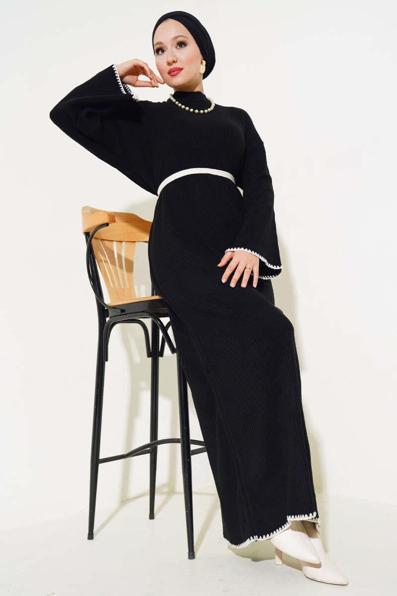 Midye Dikişli Triko Elbise Siyah (0589-3013-677629)