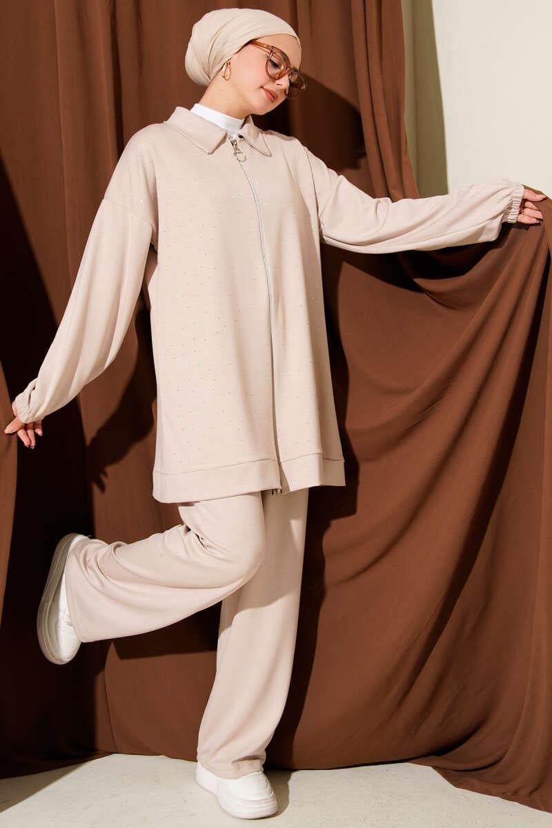 Mini Serpme Taşlı İkili Takım Bej (0026-3204-676857)