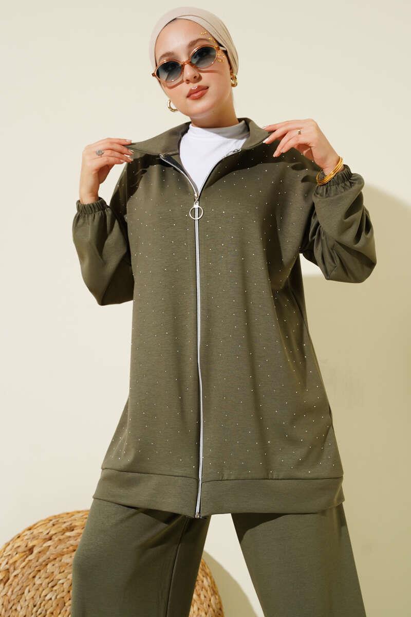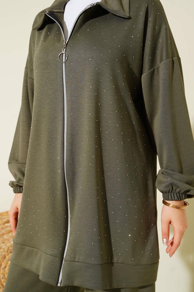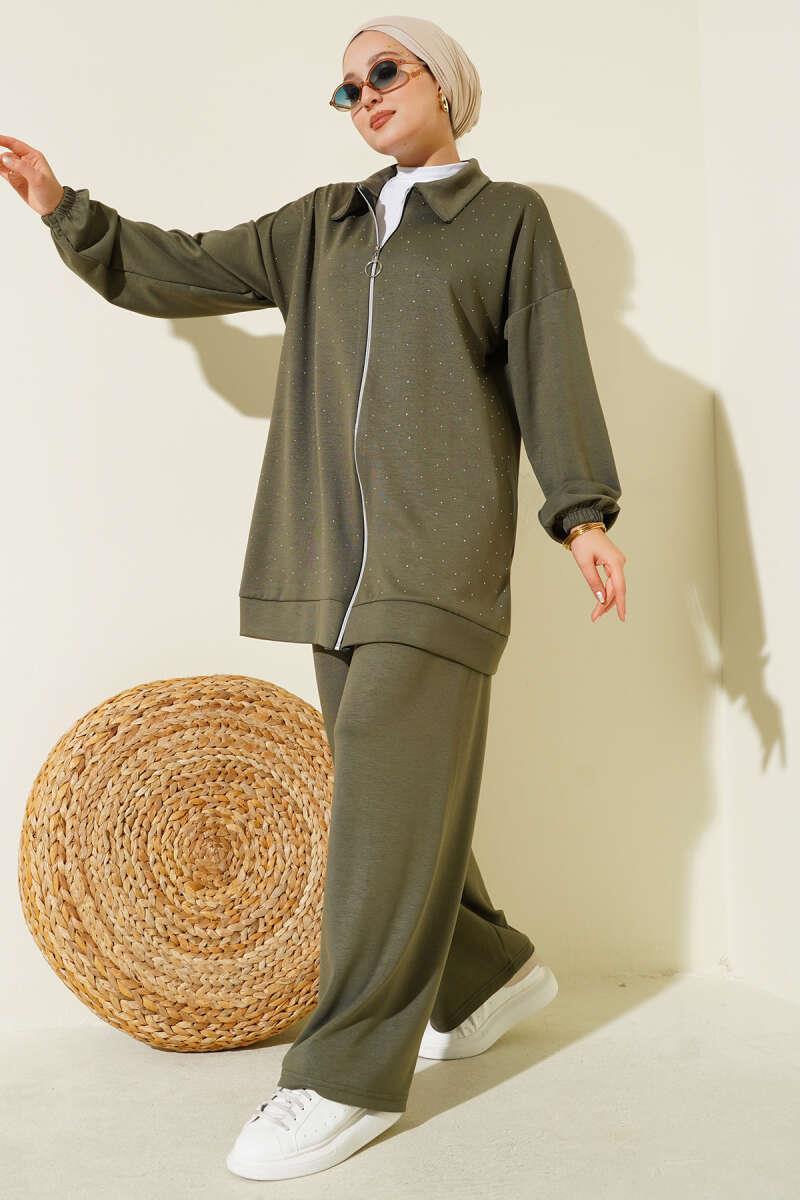 Mini Serpme Taşlı İkili Takım Haki (0026-3204-676869)