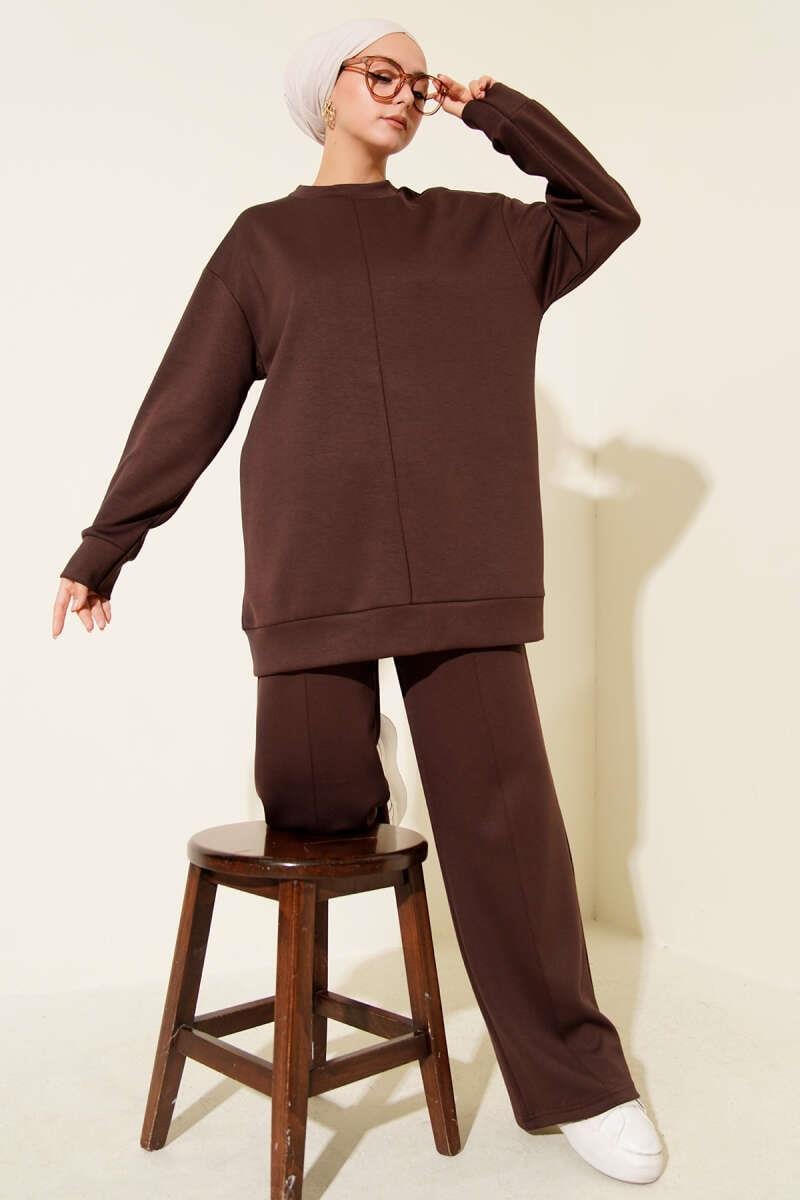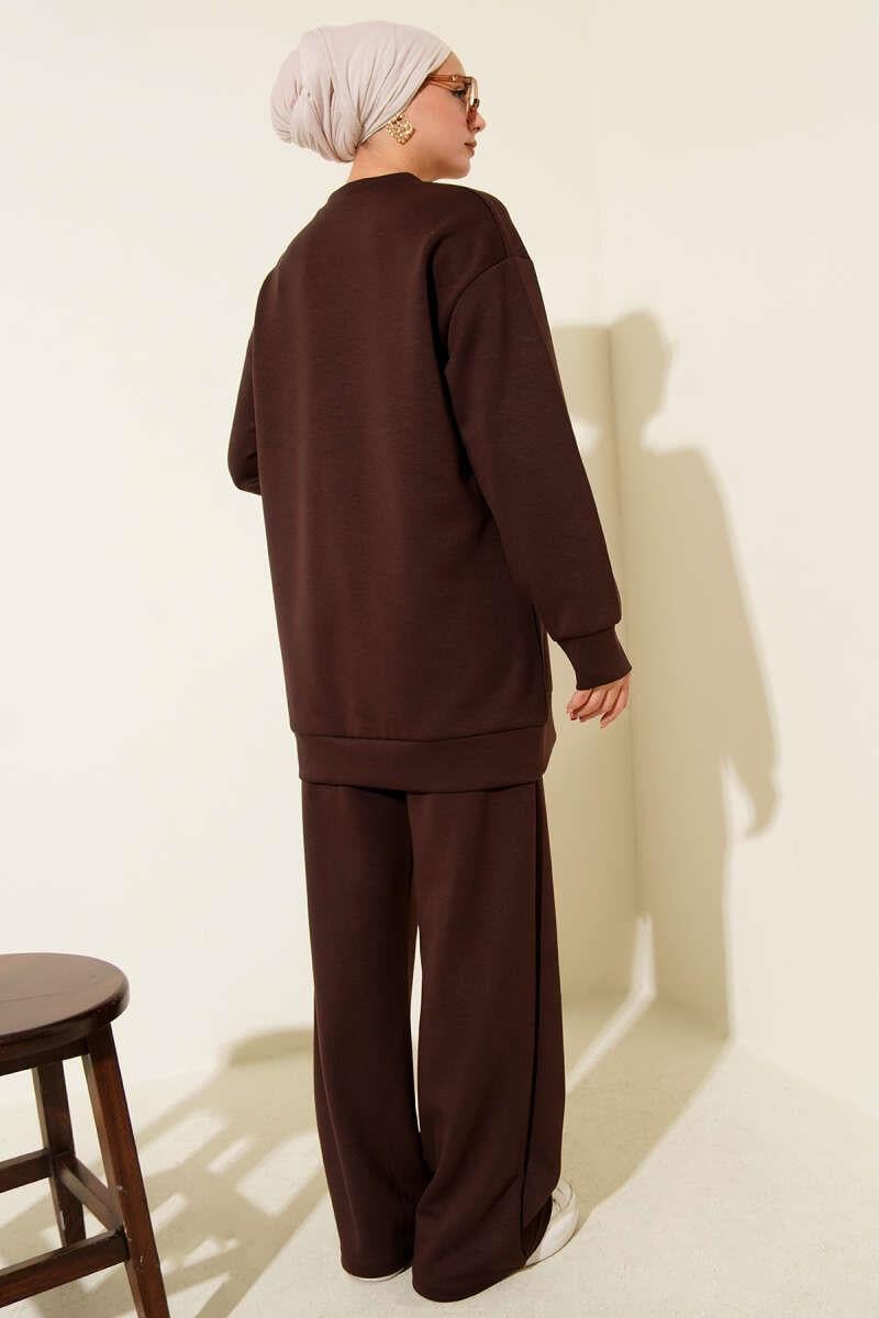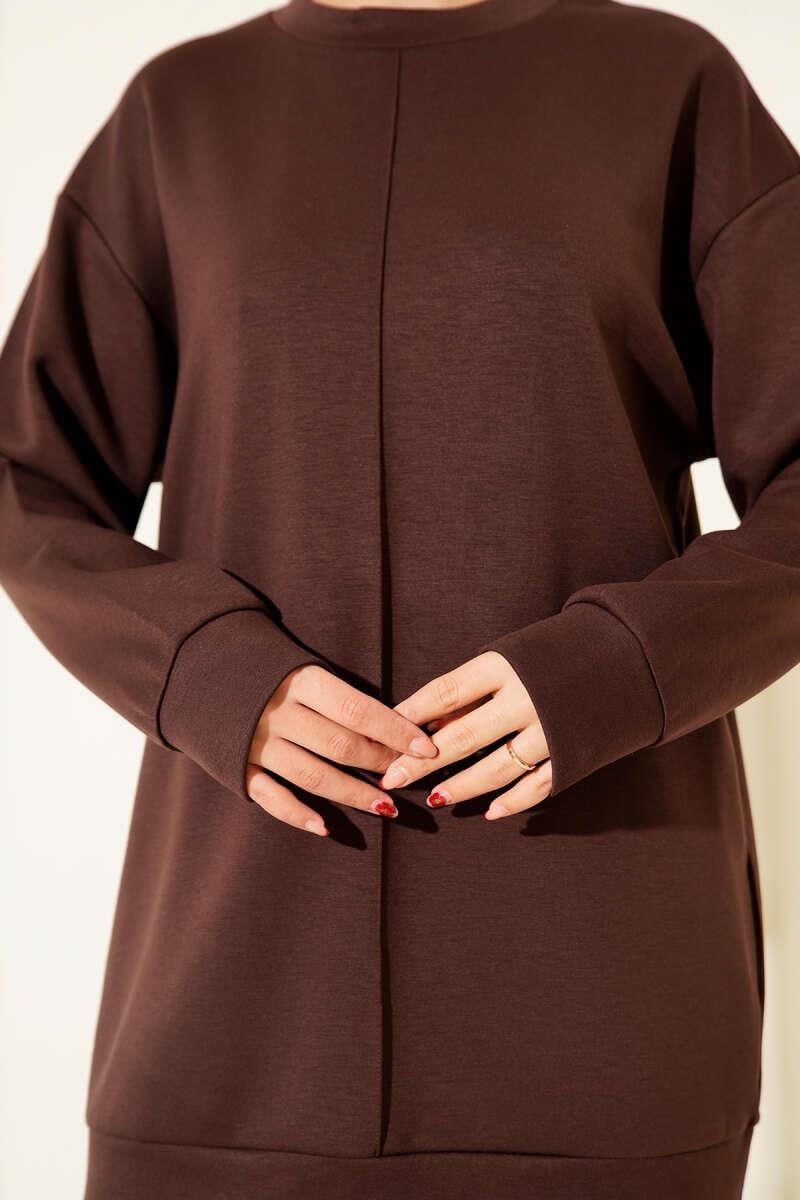 Önü Çımalı Tunik İkili Takım Acı Kahve (0753-2007-679915)