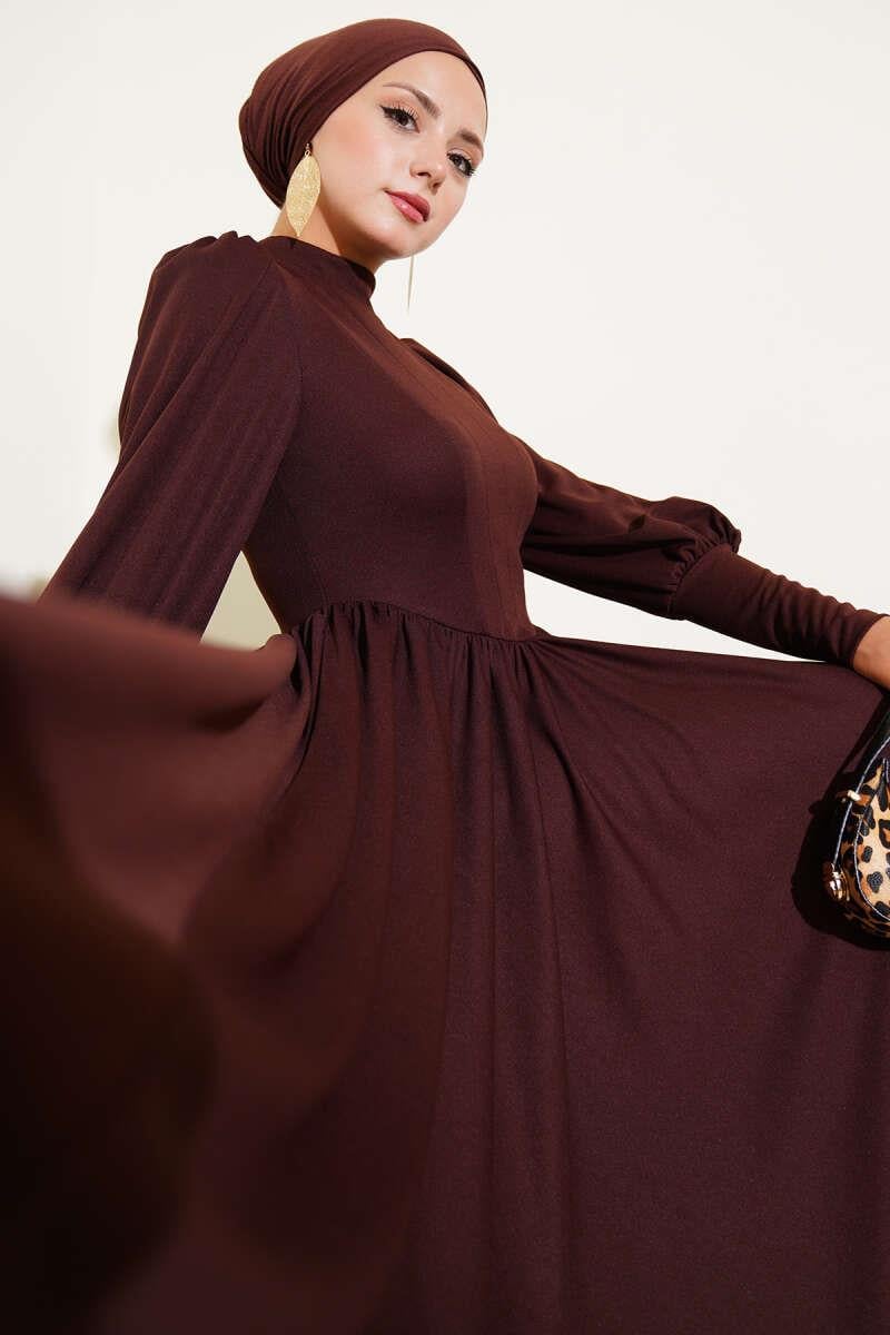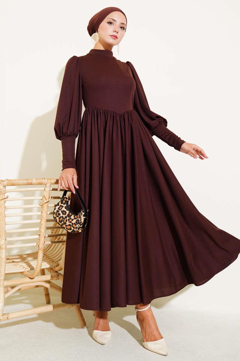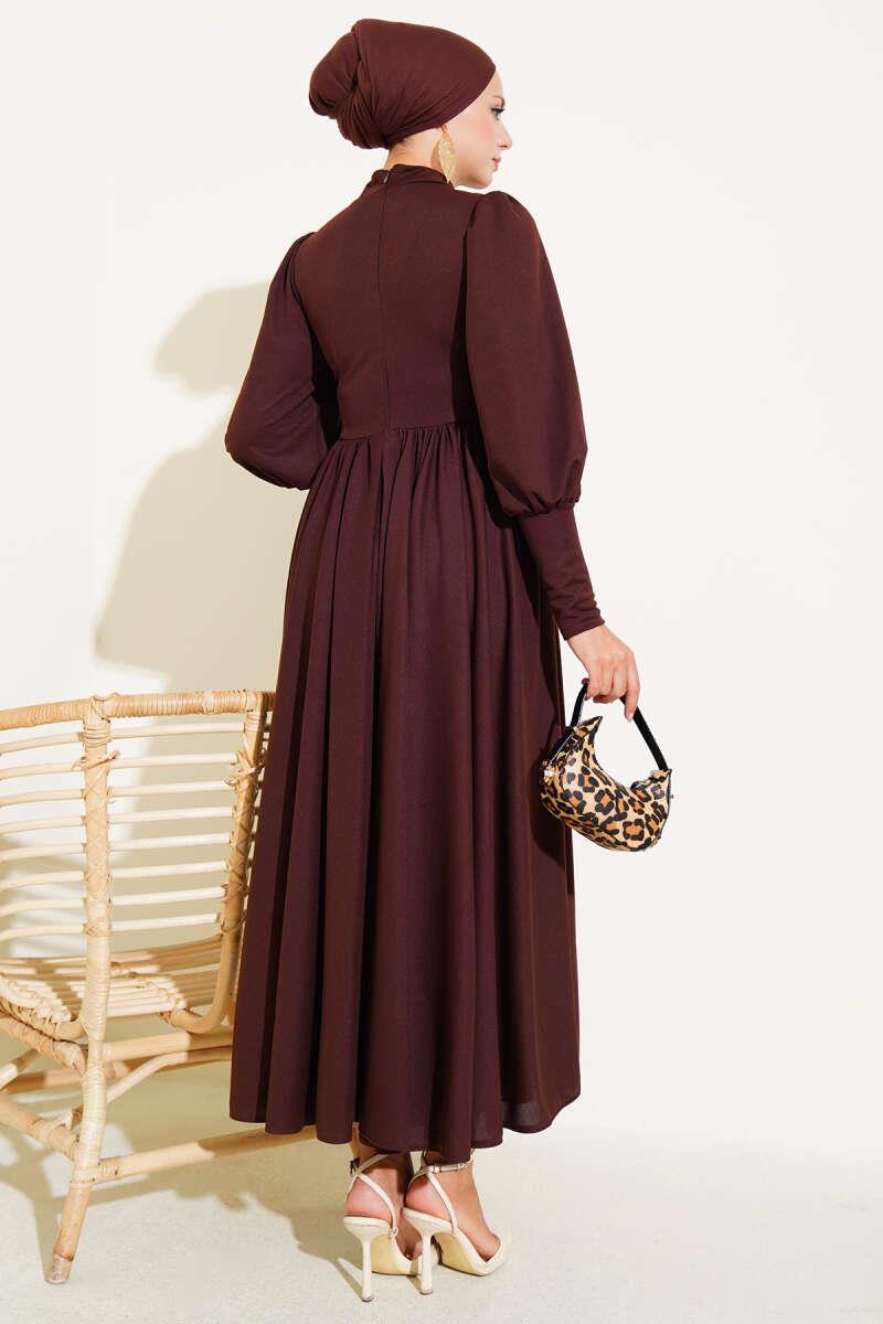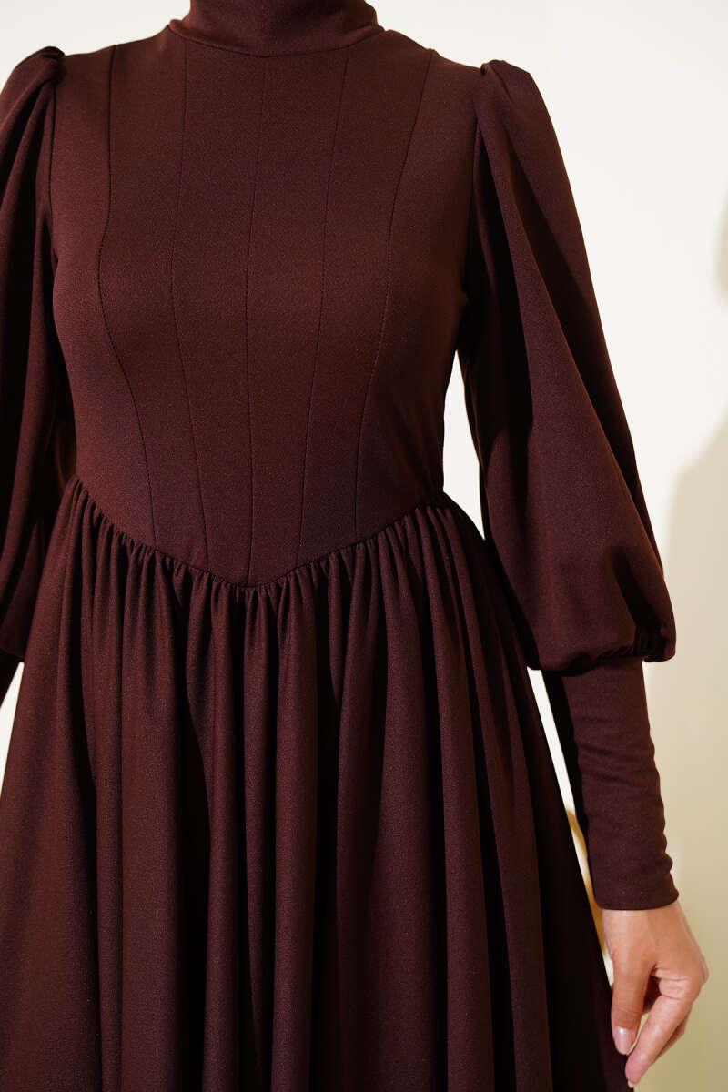 Önü Dikişli Bel Büzgülü Elbise Acı Kahve (0493-4660-668787)