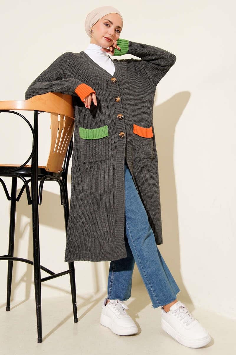 Renk Detaylı Salaş Füme Hırka (0875-2449-326446)