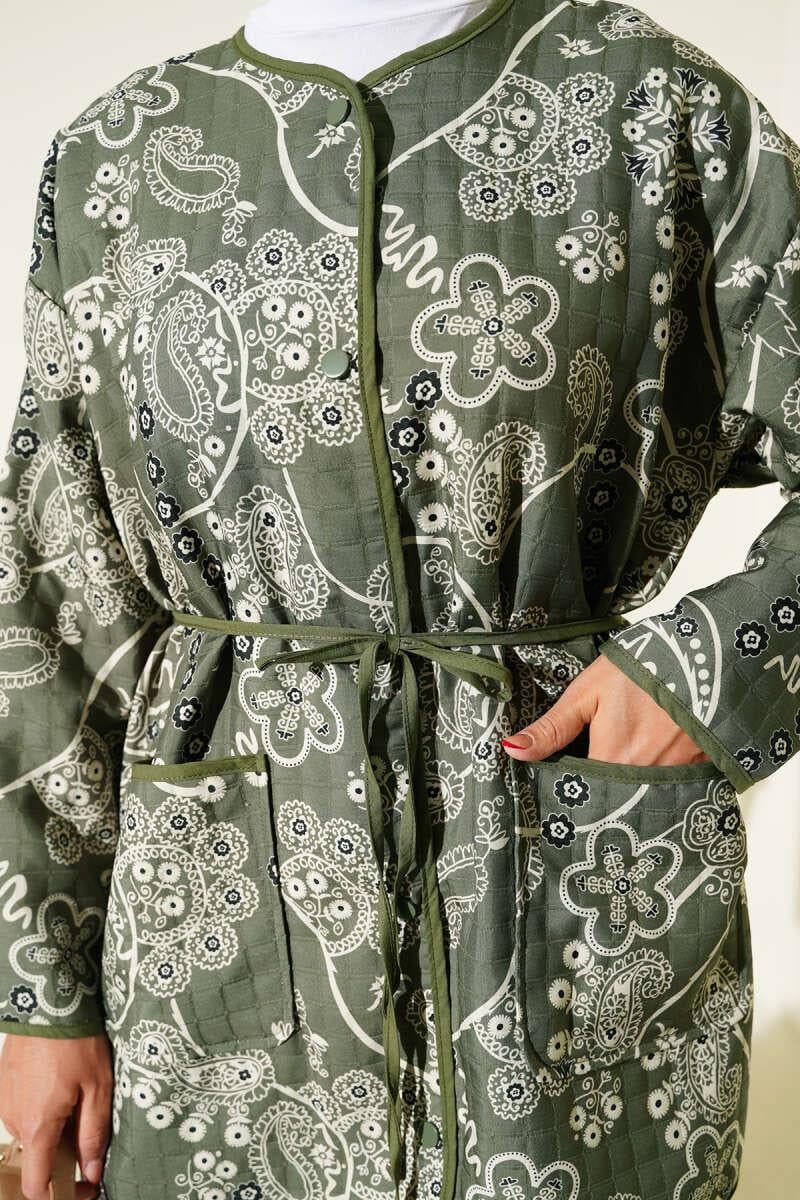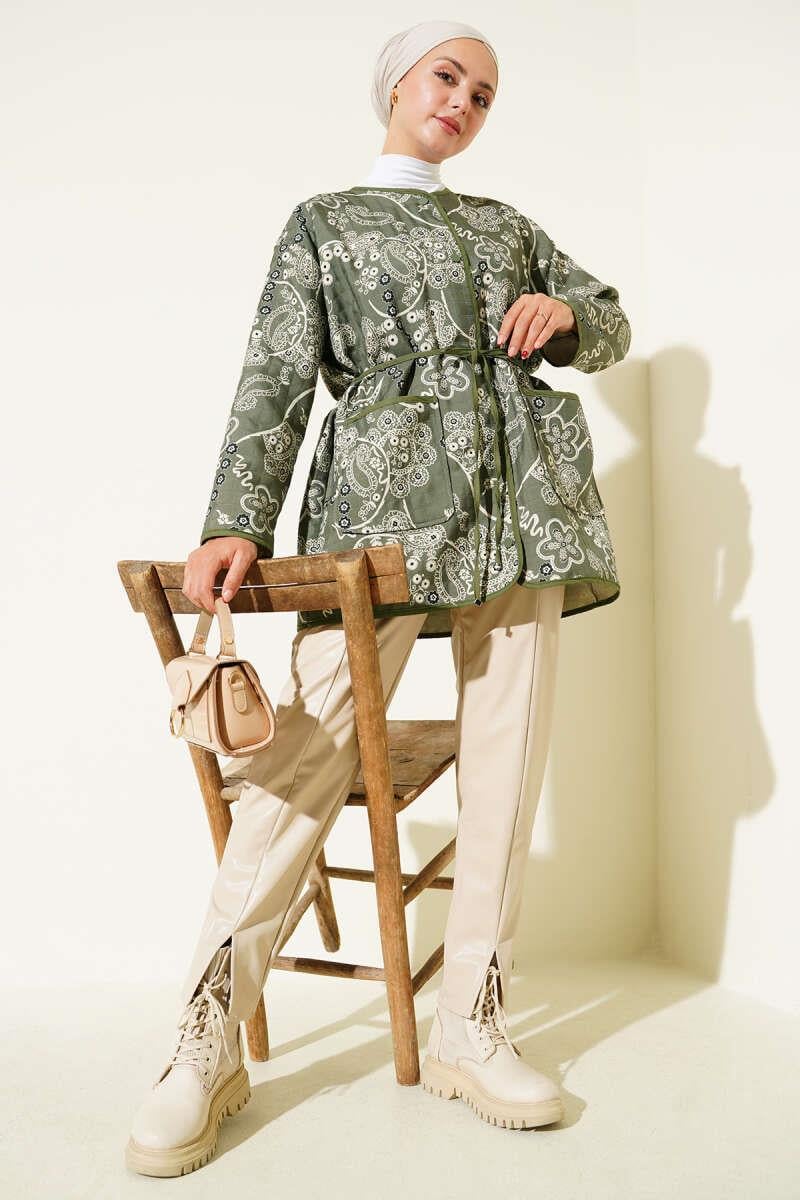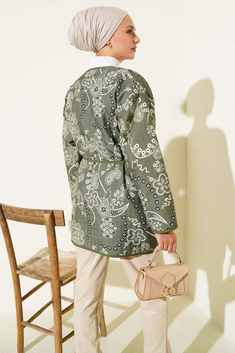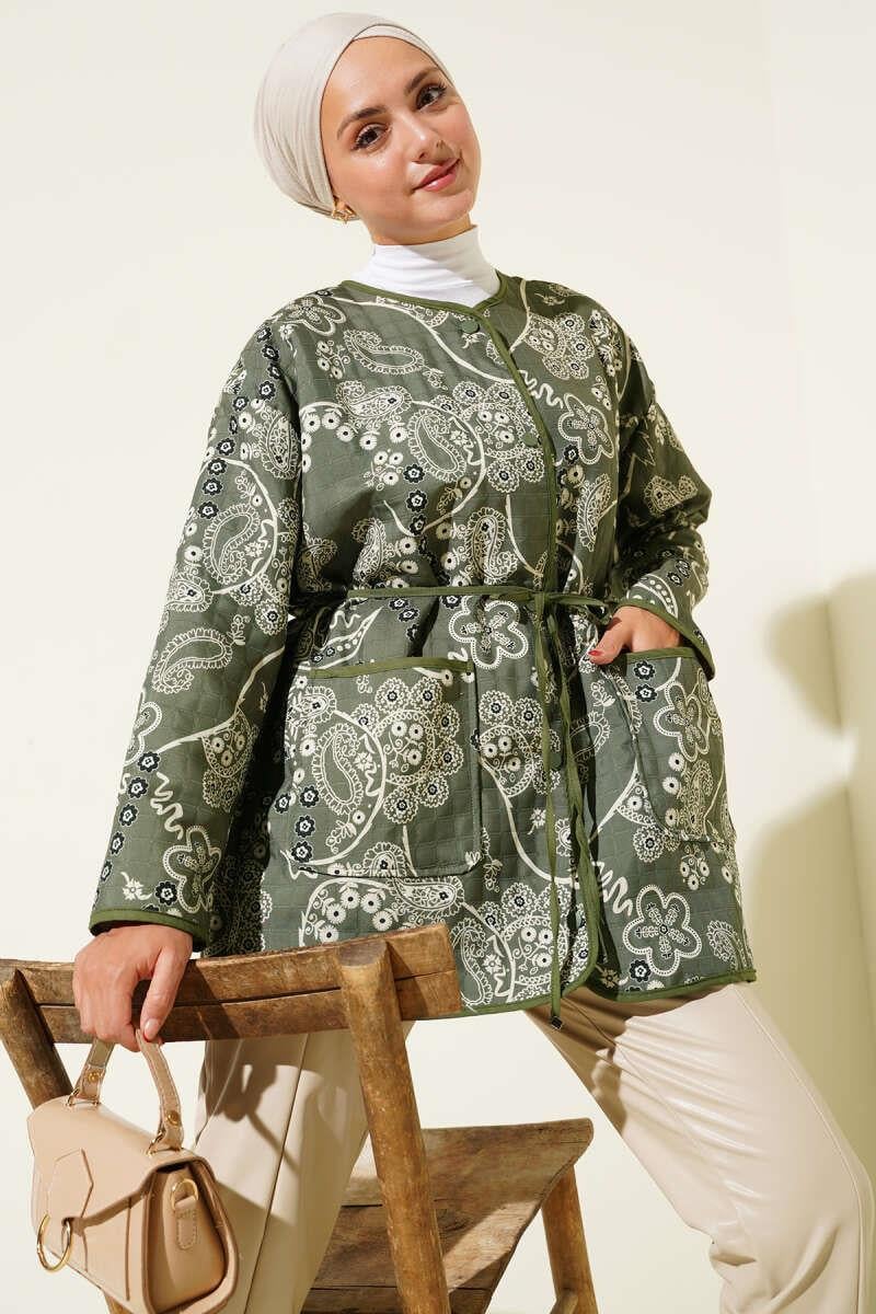 Retro Desen Kapitone Ceket Haki (0428-3496-675252)