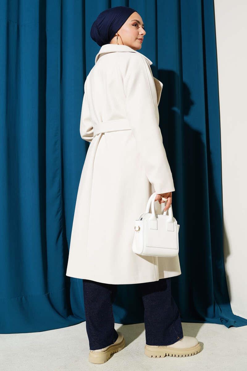 Tahta Düğmeli Kruvaze Yaka Kaşe Kaban Taş (0569-3216-677277)