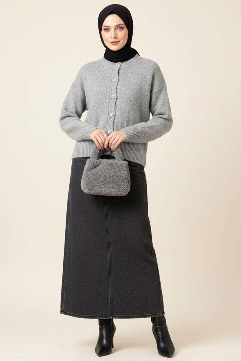 Taş Düğmeli Yumoş Triko Kısa Hırka Gri (8374-0929-688390)