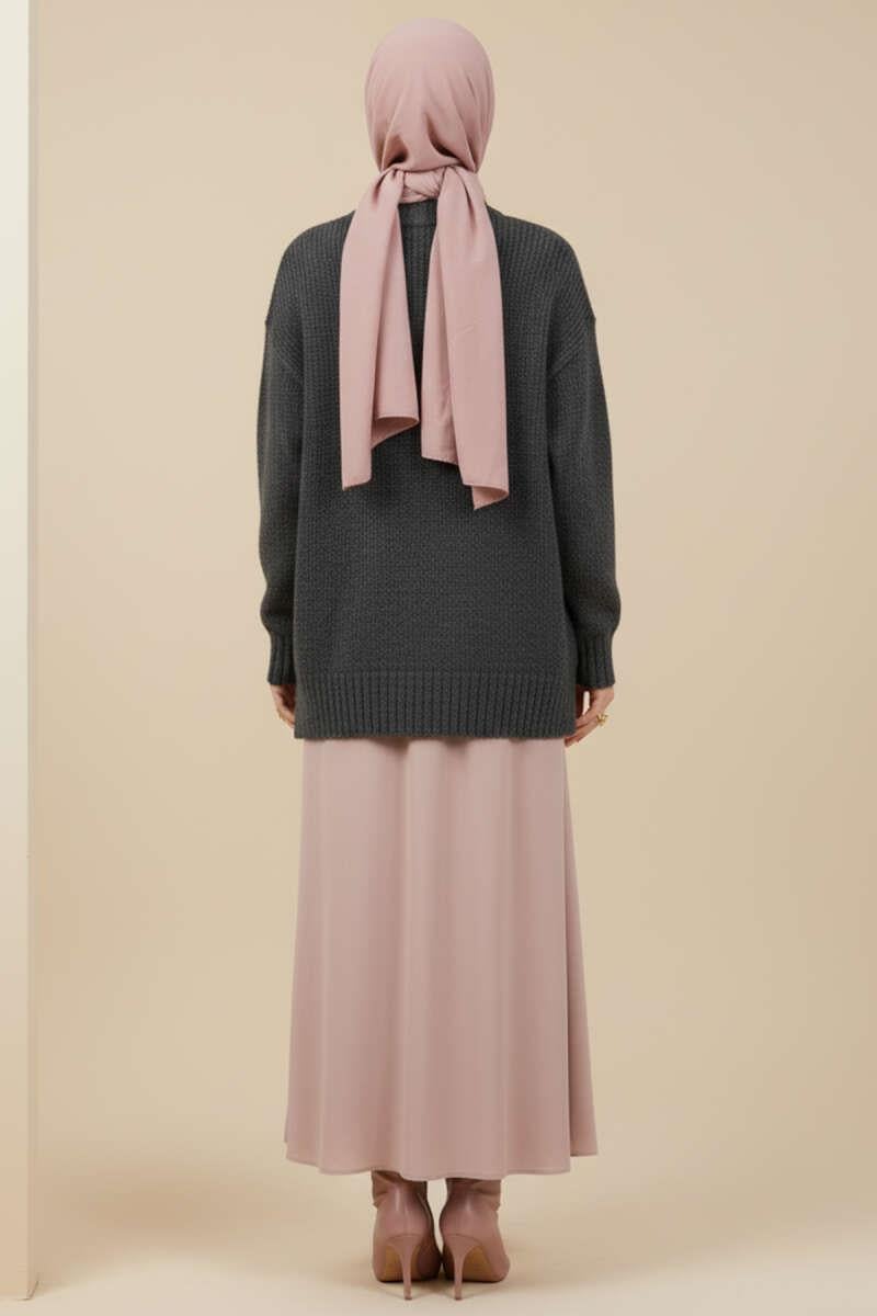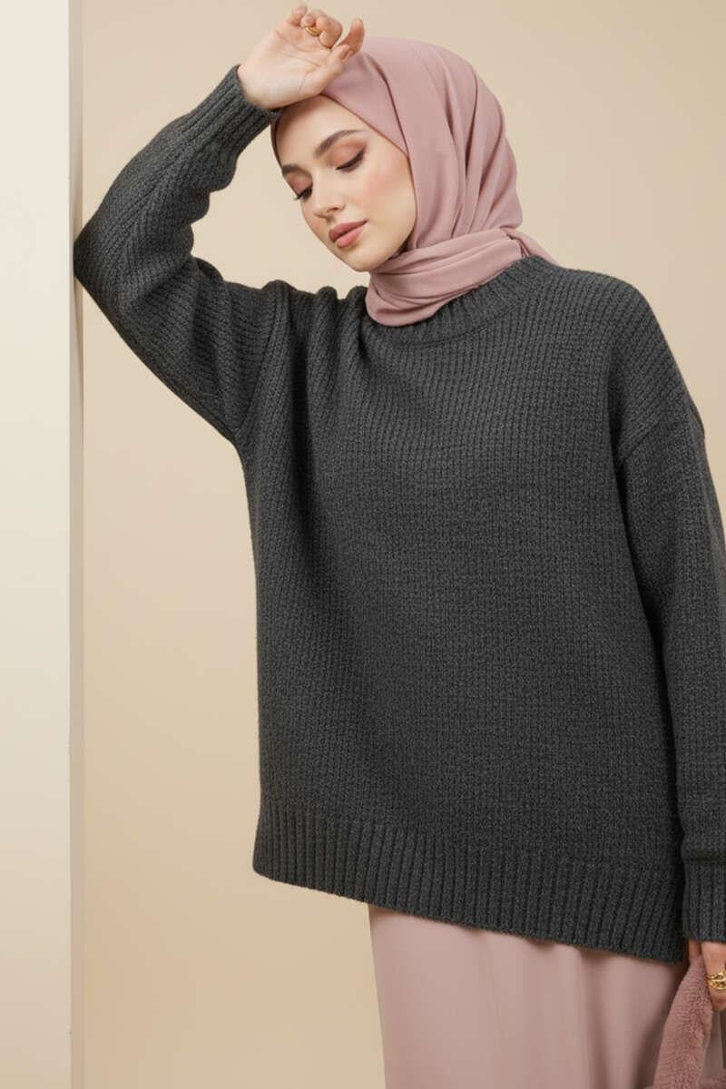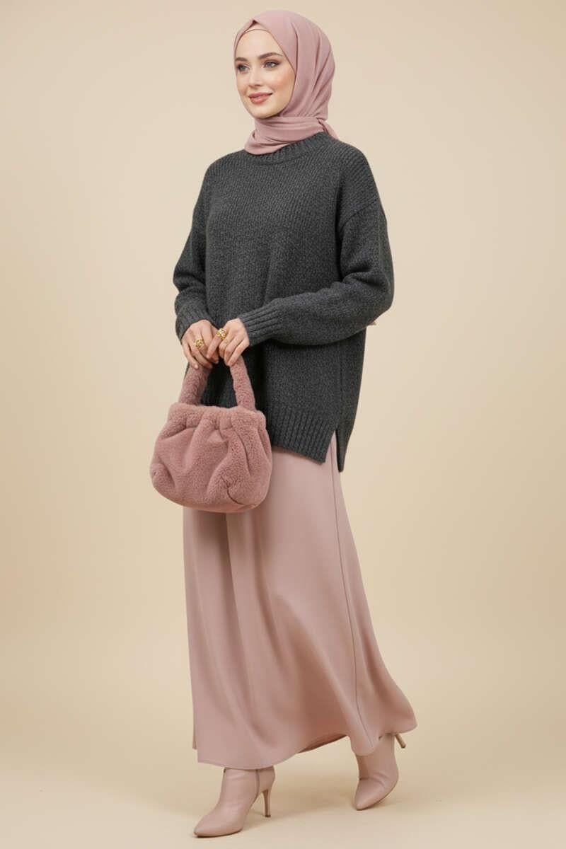 Yan Yırtmaçlı Yumoş Triko Kazak Füme (8380-1606-683081)