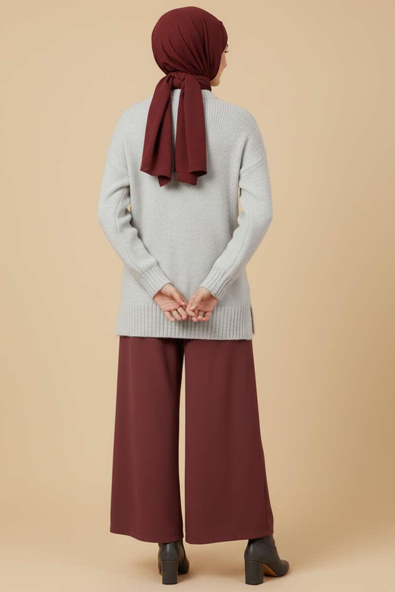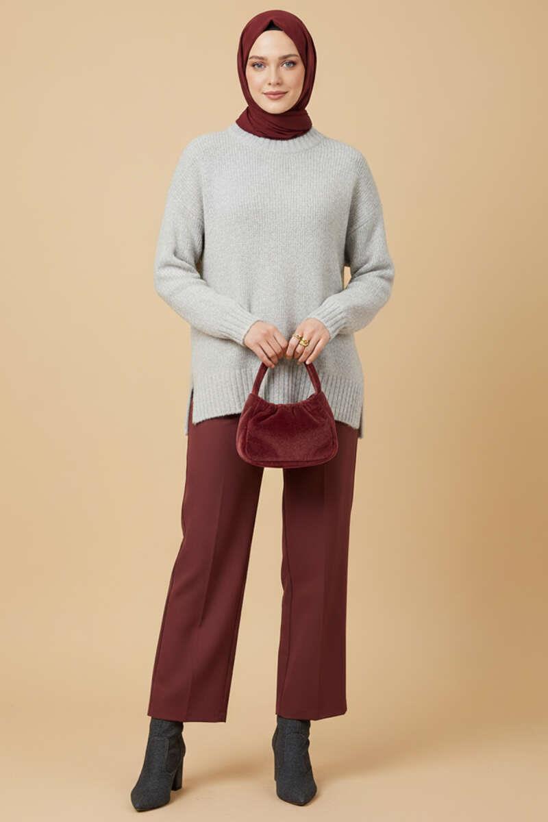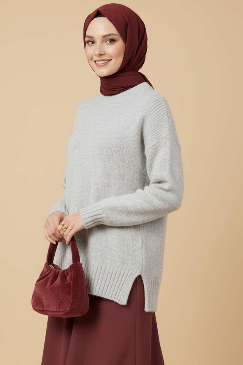 Yan Yırtmaçlı Yumoş Triko Kazak Gri (8380-1606-683082)