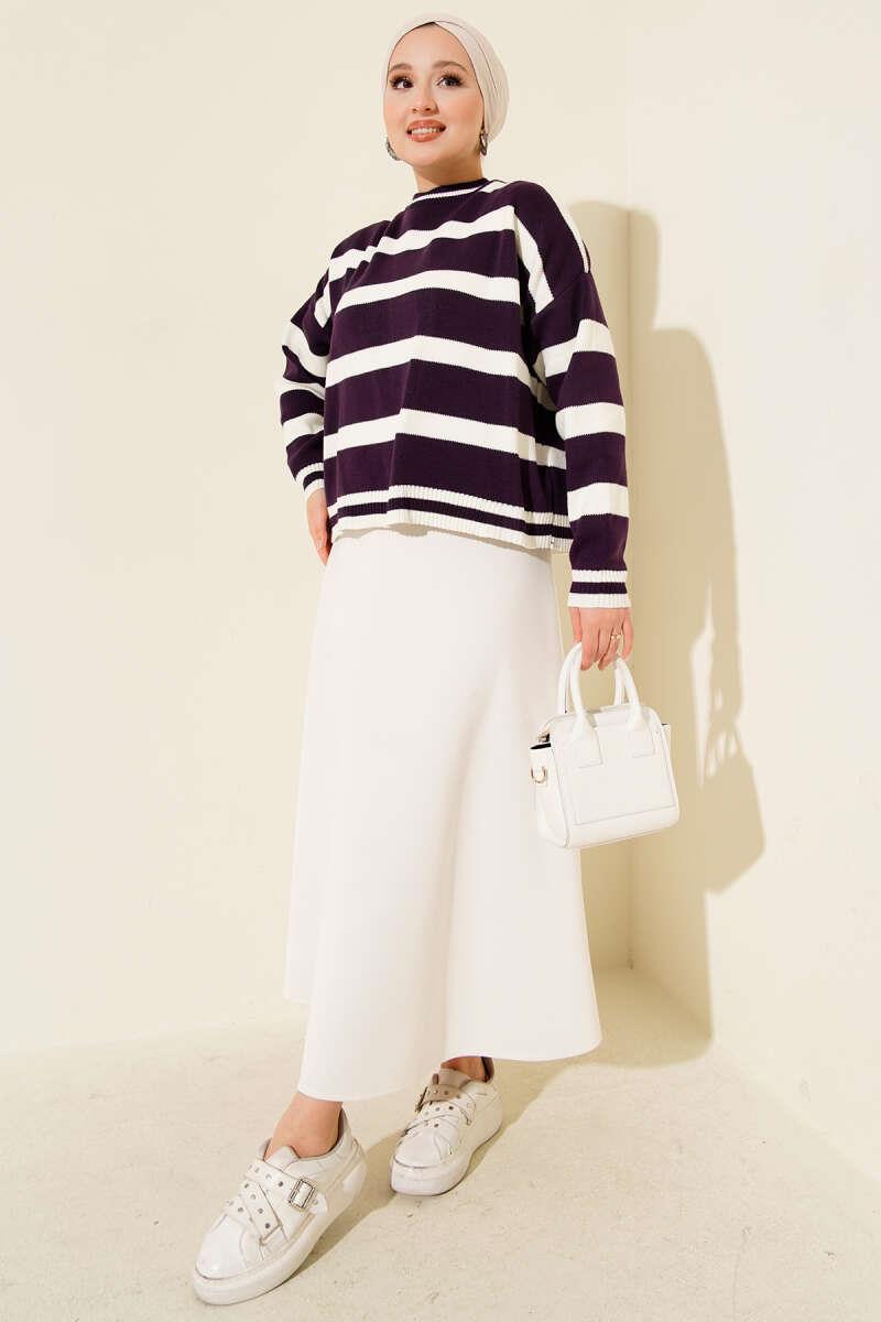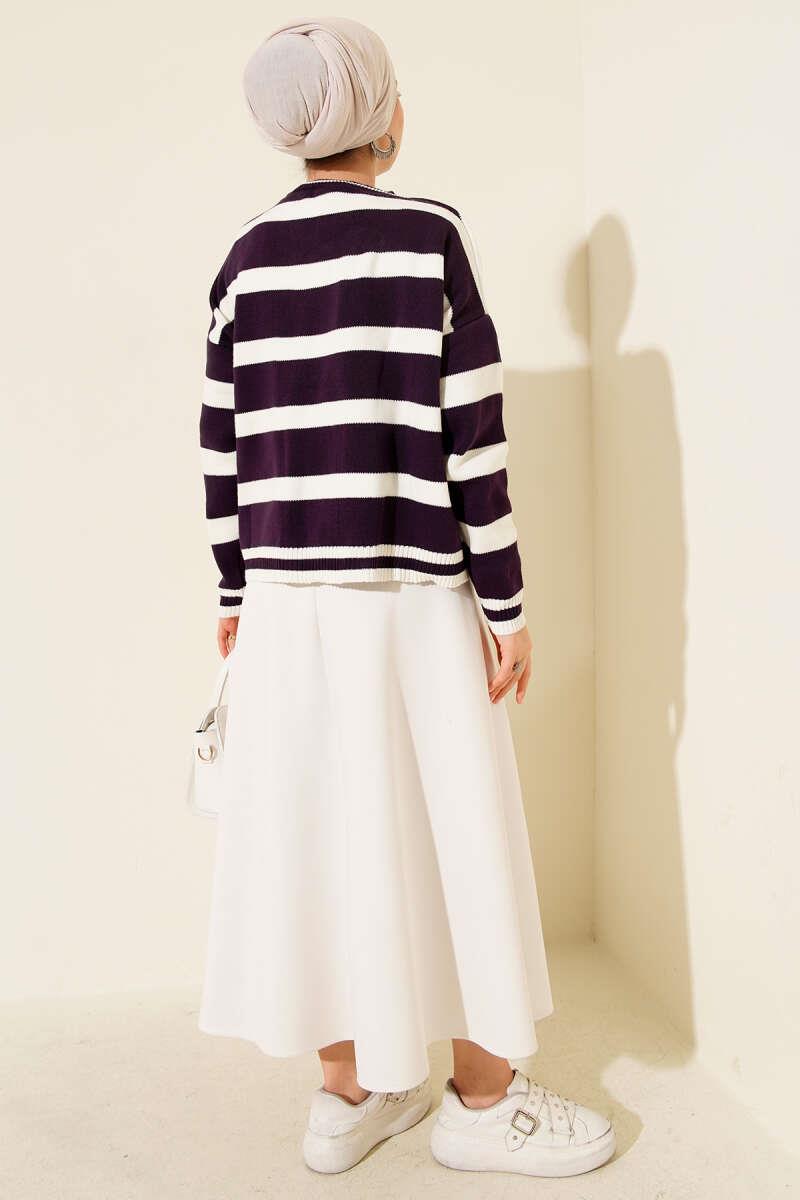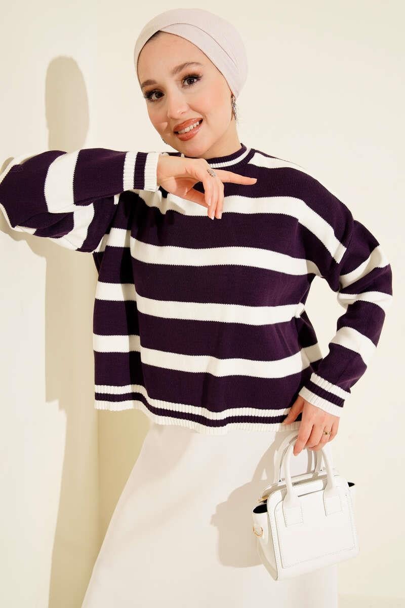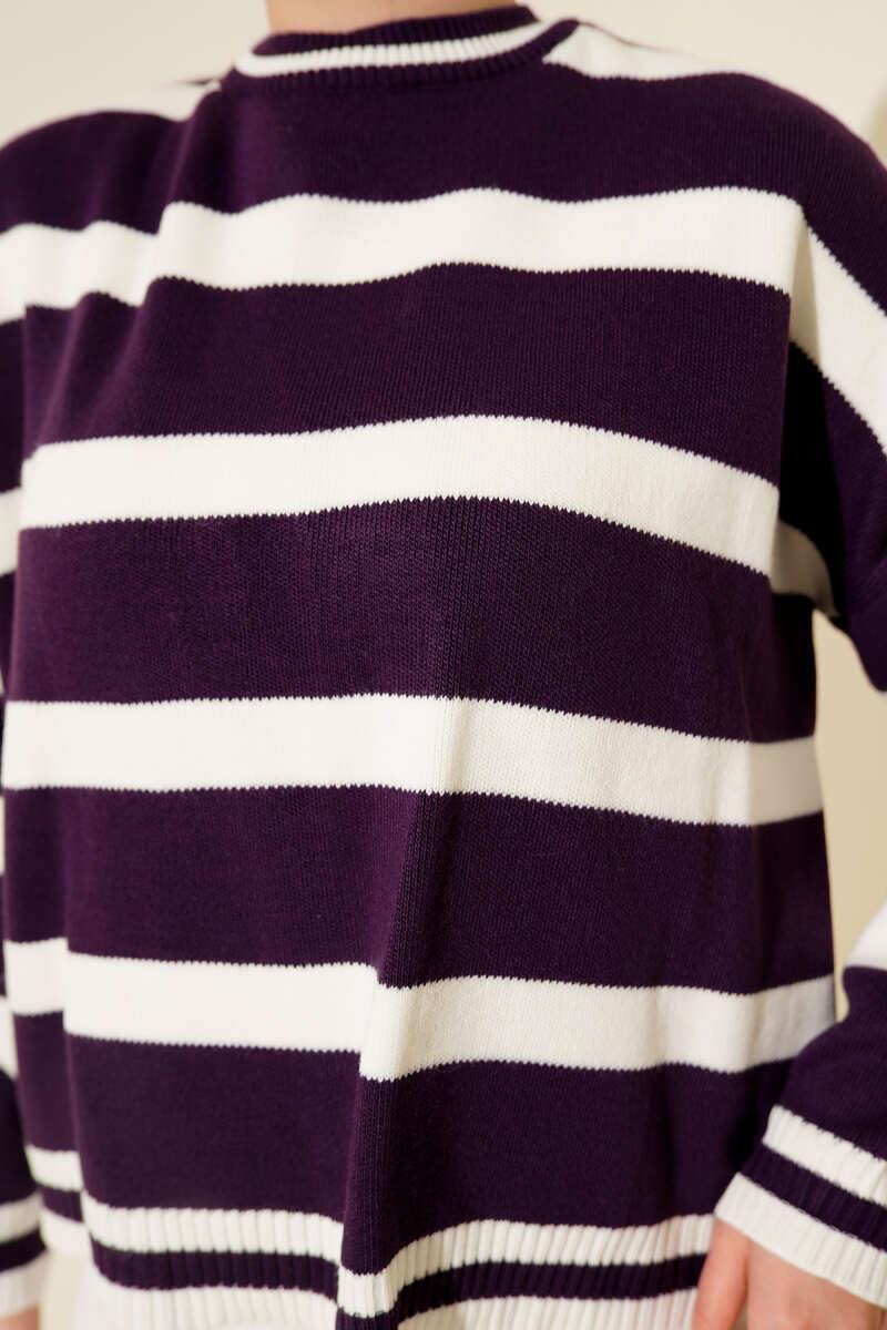 Yatay Çizgi Detaylı Kısa Triko Kazak Mor (8374-9484-683452)