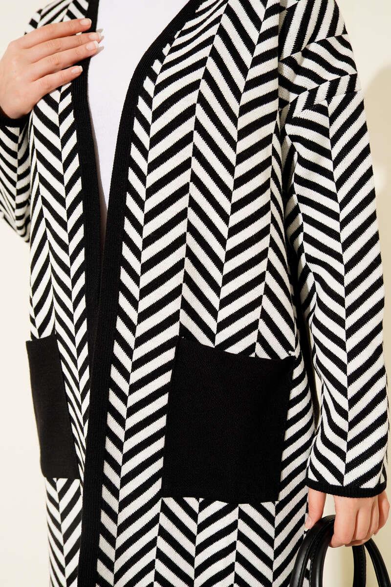 Zikzak Çizgili Desenli Uzun Triko Hırka Siyah (0875-7157-671530)